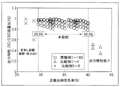 - A lithium-ion battery design with a positive electrode mixture of layered lithium-nickel-manganese-cobalt composite oxide and spinel-type lithium-manganese oxide, optimized for density, porosity, and weight ratio, to achieve high capacity and input/output characteristics while ensuring safety through specific composition and coating amounts.