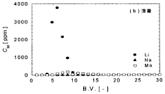 - A method involving the production of a lithium adsorbent using a molar ratio of manganese to lithium between 1:1 and 1.5, with mechanochemical pulverization and two-step calcination at 375°C to 450°C and 475°C to 550°C, followed by acid elution, which enhances the adsorbent's stability and selectivity for lithium ions.