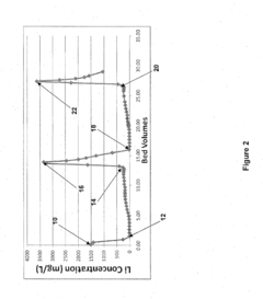 Technical Solution: Lilac Solutions has developed a proprietary ion exchange technology specifically designed for extracting lithium from low-concentration geothermal brines. Their approach uses novel ion exchange beads with high selectivity for lithium over competing ions like sodium, potassium, magnesium, and calcium. The technology employs a continuous countercurrent system where the ion exchange material is cycled between absorption and desorption stages, allowing for continuous operation. Lilac's sorbents feature engineered pore structures that enable rapid lithium uptake kinetics while maintaining mechanical durability under geothermal conditions. The company has demonstrated lithium recovery rates exceeding 90% from brines with concentrations as low as 100 ppm, significantly outperforming traditional evaporation pond methods which typically achieve 40-50% recovery rates. Their process reduces water consumption by over 99% compared to evaporation ponds and can be deployed in modular units directly at geothermal sites.