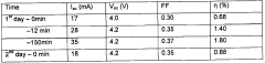 Advanced encapsulation methods play a crucial role in protecting organic photovoltaic devices from oxygen and moisture, which are primary causes of degradation. Multi-layer barrier films, edge sealing technologies, and flexible encapsulation systems can effectively extend the operational lifetime of organic solar cells by preventing environmental contaminants from reaching the active layers.Expand Specific Solutions03 Testing and monitoring systems for cycle life assessment