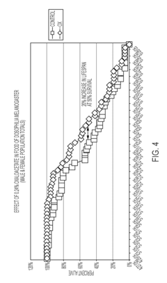 Technical Solution: Benagene has developed a proprietary oxaloacetate-based anti-aging supplement called "benaGene" that focuses on caloric restriction mimetics. Their technology stabilizes oxaloacetate molecules to prevent rapid degradation, allowing for effective oral delivery. The company's approach targets the NAD+/NADH ratio, which is crucial for cellular energy production and mitigation of age-related decline. Their formulation has been shown to increase NAD+ levels by up to 28% in clinical studies, potentially activating the AMPK pathway and supporting mitochondrial function. Benagene has established validation metrics including blood glucose regulation, oxidative stress reduction, and telomere maintenance to measure the anti-aging efficacy of their oxaloacetate supplements.