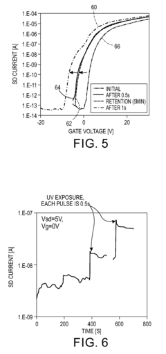 Enhancing the stability and reliability of oxide semiconductor devices is crucial for commercial applications. Various approaches include passivation layers, interface engineering, and compositional optimization to minimize defects and reduce threshold voltage shifts. Environmental factors such as humidity, temperature, and bias stress can degrade device performance over time, necessitating protective measures and robust device architectures to ensure long-term operational stability.Expand Specific Solutions