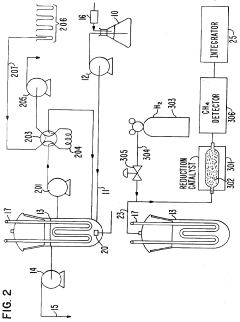 Controlling the pH during ozonation processes can significantly reduce bromate formation. Lower pH conditions inhibit the conversion of bromide to bromate by suppressing the formation of hydroxyl radicals and altering the ozonation pathway. Various techniques for pH adjustment include the addition of acids prior to ozonation and the implementation of two-stage treatment processes where pH is carefully managed at each stage. These methods can achieve substantial reductions in bromate formation while maintaining effective disinfection capabilities.Expand Specific Solutions03 Catalytic processes for bromate control