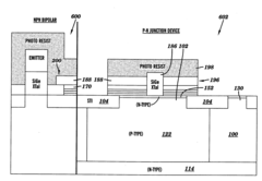 Technical Solution: TSMC has developed specialized RF-optimized semiconductor processes that address P-N junction signal loss through advanced material engineering and junction design. Their RF-CMOS technology features ultra-shallow junctions with precisely controlled doping profiles to minimize junction capacitance and series resistance. TSMC's RF SOI (Silicon-on-Insulator) process incorporates a buried oxide layer that effectively isolates P-N junctions from the substrate, significantly reducing parasitic capacitance and substrate coupling losses that typically degrade RF performance. Their advanced SiGe BiCMOS technology utilizes graded germanium profiles in the base region of bipolar transistors to optimize the emitter-base and collector-base junctions for enhanced RF performance. TSMC has also pioneered specialized silicide and contact technologies that reduce junction access resistance, a critical factor in minimizing signal attenuation in RF devices. Additionally, their wafer-level packaging solutions provide shorter interconnect paths that preserve signal integrity by minimizing transmission line effects between junctions.