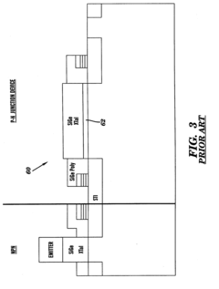Engineered substrate technologies have further enhanced RF performance through strategic manipulation of crystal lattice structures. Techniques such as strain engineering and epitaxial growth processes have enabled the creation of heterojunction interfaces with minimized lattice mismatch, reducing scattering effects that contribute to signal degradation. Silicon-on-insulator (SOI) and silicon-on-sapphire (SOS) substrates have demonstrated up to 30% reduction in junction capacitance compared to bulk silicon implementations.