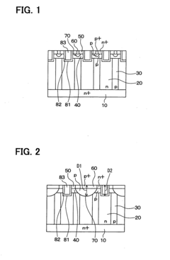 Various techniques can be implemented to enhance energy efficiency in semiconductor devices. These include threshold voltage optimization, leakage current reduction methods, and power management circuitry integration. Advanced insulating materials and novel device architectures also contribute to minimizing power consumption while maintaining performance, making these devices suitable for energy-sensitive applications.Expand Specific Solutions04 Integration of Novel Materials in Junction and MOSFET Technology