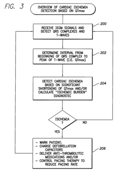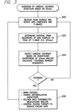 Technical Solution: Medtronic has developed advanced ECG algorithms for detecting P wave alterations in ischemic heart disease. Their technology utilizes machine learning techniques to analyze subtle changes in P wave morphology, amplitude, and duration[1]. The system incorporates multi-lead ECG data and patient-specific factors to improve accuracy. Medtronic's solution also includes real-time monitoring capabilities, allowing for early detection of ischemic events before they progress to more severe conditions[2]. The company has integrated this technology into their cardiac monitoring devices and implantable cardioverter-defibrillators (ICDs) to provide comprehensive ischemia detection[3].