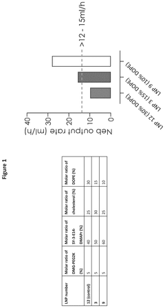 - The development of lipid nanoparticles with a lower total lipid content, specifically by reducing the molar ratio of non-cationic lipids and increasing the molar ratio of cationic lipids to greater than 40%, improves nebulization output rates and maintains encapsulation efficiency, achieving enhanced protein expression of mRNA-encoded proteins.
