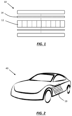 Strengths: Industry-leading thermal management integration with electrical insulation properties; extensive manufacturing scale enables rapid implementation across multiple vehicle platforms. Weaknesses: Higher production costs compared to conventional solutions; some materials require specialized handling during battery assembly and recycling processes.