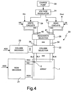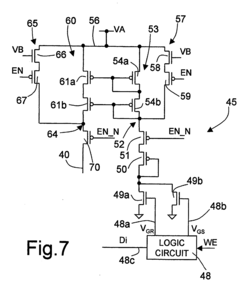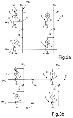 Innovative PCM cell designs incorporate features that minimize the impact of wire resistive losses. These architectures include optimized electrode configurations, selector devices with lower resistance, and improved phase change material interfaces. By reducing the resistance at the cell level, these designs enhance programming efficiency and read performance while lowering power consumption in the overall array.Expand Specific Solutions04 Circuit techniques for resistive loss compensation