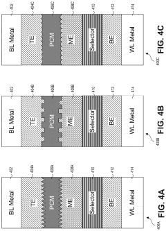 As PCM technology scales down to smaller nodes, cell architecture faces significant integration challenges. Reduced cell dimensions affect thermal confinement, current density, and material properties. While scaling offers benefits in terms of higher density and potentially lower power consumption, it introduces issues related to resistance drift, cell-to-cell variability, and manufacturing precision. Advanced cell architectures incorporate novel electrode materials and confined cell structures to address these scaling challenges.Expand Specific Solutions04 Selector device integration