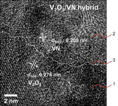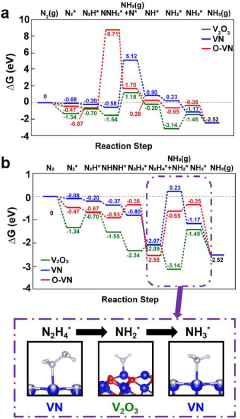 - A vanadium oxide-nitride hybrid electrocatalyst is developed, featuring a first region of vanadium oxide nanoparticles, a second region of vanadium nitride nanoparticles, and an amorphous boundary region where both are mixed, facilitating parallelization of nitrogen reduction reaction intermediates to accelerate the overall reaction.
