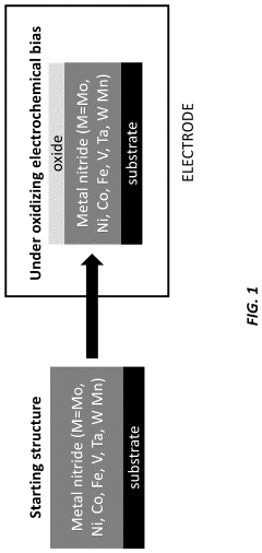 - A method involving the deposition of a transition metal nitride layer on a substrate with an in-situ formed oxidized surface layer using an oxidizing electrochemical bias, creating a thin oxide layer that enhances ORR activity and stability, specifically using transition metals like Mo, Ni, Co, Fe, V, Ta, W, and Mn in amorphous or crystalline structures with nanostructured or thin film morphologies.