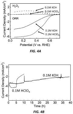 Strengths: Catalyst designs optimized for industrial-scale implementation rather than just laboratory performance; comprehensive economic analysis incorporating full production costs; robust testing under realistic operating conditions including presence of contaminants. Weaknesses: Generally lower peak performance metrics compared to academic research catalysts; higher emphasis on stability sometimes comes at the cost of maximum activity; more conservative design approaches limiting exploration of cutting-edge materials.