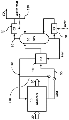 The energy required for sorbent regeneration is a crucial performance metric, as it directly impacts the overall energy efficiency of the capture process. Lower regeneration energy requirements lead to more economical CO₂ capture systems. Additionally, cycling stability (the ability of sorbents to maintain performance over multiple adsorption-desorption cycles) is essential for long-term operation. Degradation rates and lifetime performance are measured to assess economic viability of sorbent materials.Expand Specific Solutions03 Kinetics and mass transfer characteristics