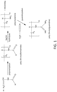 - The use of poly(N-vinyl guanidine)-based (PVG) polymer materials as a sorbent, which can be shaped into nanofibers or dissolved in water for enhanced surface area and sorption capability, and is regenerated through heating or hydroxide ion exchange for repeated use, offering low energy regeneration routes and high CO2 sorption capacities.