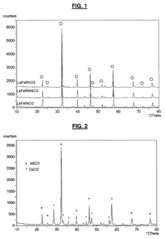 Innovative approaches to synthesizing perovskite catalysts with enhanced properties have been developed. These methods include sol-gel processing, hydrothermal synthesis, and combustion techniques that yield materials with controlled morphology, particle size, and surface area. Novel compositions incorporating rare earth elements, transition metals, and dopants have been created to improve catalytic performance, stability, and selectivity for specific reactions.Expand Specific Solutions04 Perovskite catalysts for energy applications