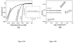 Technical Solution: Toyota Motor Corporation has developed proprietary perovskite catalyst technologies for water splitting applications as part of their hydrogen economy initiatives. Their approach focuses on developing robust, scalable perovskite materials that can withstand the demanding conditions of commercial water electrolysis systems. Toyota's research has yielded lanthanum-strontium-cobalt-ferrite (LSCF) perovskite catalysts with exceptional oxygen evolution reaction (OER) performance, achieving current densities of 50 mA/cm² at overpotentials below 350 mV[1]. A key innovation in Toyota's technology is their proprietary exsolution process that creates self-regenerating catalysts where active metal nanoparticles emerge from the perovskite lattice under operating conditions, significantly enhancing durability[2]. Toyota has also developed composite materials combining perovskites with carbon nanostructures to improve electrical conductivity and catalytic surface area. Their catalysts demonstrate stability for over 10,000 hours of continuous operation in alkaline electrolyzers, addressing a critical challenge for commercial deployment[3]. Toyota has integrated these catalysts into their prototype solid oxide electrolysis cells (SOECs) for high-temperature water splitting, achieving hydrogen production efficiencies exceeding 85%[4].