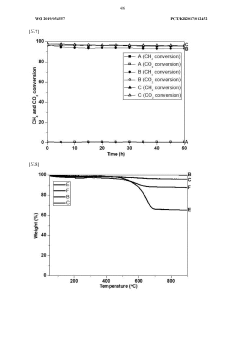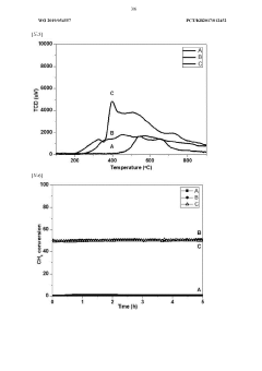 Technical Solution: Oxford University Innovation has developed advanced perovskite catalysts with unique compositional engineering techniques that enhance semiconductor manufacturing processes. Their technology focuses on lead-free perovskite formulations that maintain high catalytic activity while addressing environmental concerns. The research team has pioneered methods to control the crystal structure and surface properties of perovskite materials, resulting in catalysts that can operate at lower temperatures than conventional alternatives, reducing energy consumption in semiconductor fabrication. Their patented synthesis approach creates highly stable perovskite structures with controlled defect concentrations, which significantly improves the lifetime and performance of catalysts used in critical semiconductor manufacturing steps such as atomic layer deposition and chemical vapor deposition processes.