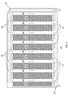 Optimizing the flow arrangement and distribution within heat exchangers can enhance heat exchange efficiency. This includes implementing counter-flow or cross-flow configurations, ensuring uniform fluid distribution, and minimizing pressure drops. Proper flow management reduces dead zones and hot spots, leading to more effective heat transfer across the entire exchanger surface.Expand Specific Solutions04 Advanced materials and coatings