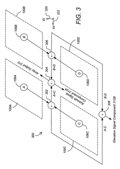Technical Solution: Raytheon has developed advanced phased array radar systems for atmospheric studies that utilize digital beamforming technology to enhance data clarity in weather monitoring. Their systems employ active electronically scanned arrays (AESA) with thousands of transmit/receive modules that can be individually controlled to steer the radar beam electronically rather than mechanically. This allows for rapid scanning of the atmosphere at multiple elevations simultaneously, significantly improving temporal resolution. Raytheon's atmospheric phased arrays incorporate dual-polarization capabilities, enabling better discrimination between different types of precipitation and improved quantitative precipitation estimates. Their signal processing algorithms include advanced clutter suppression techniques and adaptive waveform selection to optimize performance in varying atmospheric conditions. Raytheon has also implemented pulse compression techniques that improve range resolution while maintaining high sensitivity for detecting weak atmospheric signals.