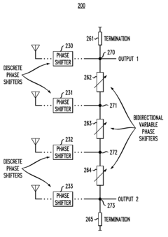 - The implementation of N discrete phase shifters and N-1 variable phase shifters, where the discrete phase shifters reduce the continuous phase shift range and eliminate the need for variable termination impedance, allowing for low insertion and return losses, and enabling single-chip integration with a widely adjustable phase shifter.