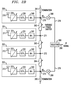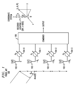Various techniques are employed to optimize the sensitivity thresholds of phased array antennas. These include advanced beamforming algorithms, adaptive gain control mechanisms, and signal processing methods that enhance detection capabilities. By optimizing element spacing and phase relationships, these systems can achieve higher sensitivity while maintaining directional precision. These improvements enable better detection of weak signals in challenging environments and reduce susceptibility to interference.- Phased array antenna sensitivity optimization: Phased array antennas can be optimized for sensitivity by adjusting element spacing, phase shifting techniques, and signal processing algorithms. These optimizations help to improve signal reception and transmission capabilities while minimizing noise interference. The sensitivity threshold can be enhanced through adaptive beamforming techniques that dynamically adjust the array pattern according to environmental conditions and signal characteristics.