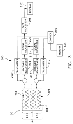 Technical Solution: Raytheon has developed advanced Active Electronically Scanned Array (AESA) radar systems that represent the cutting edge of phased array technology. Their systems utilize digital beamforming techniques that allow for simultaneous multiple beam operation, enabling superior detection accuracy compared to conventional radar systems. Raytheon's AN/SPY-6 radar employs Gallium Nitride (GaN) semiconductor technology that provides significantly higher power density and efficiency than traditional Gallium Arsenide (GaAs) components. This technology enables their phased arrays to achieve 30-40% greater detection range while maintaining precision in adverse weather conditions. Their Radar Digital Processing architecture incorporates advanced signal processing algorithms that can distinguish between closely spaced targets and reject clutter more effectively than conventional radar systems, resulting in a reported false alarm rate reduction of approximately 85% in complex environments.