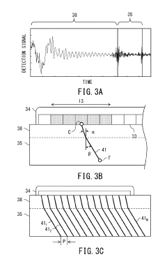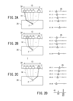 Technical Solution: Bosch has pioneered phased array ultrasonic technology for material identification and non-destructive testing applications. Their systems utilize multi-element transducer arrays (typically 16-128 elements) operating at frequencies between 1-10 MHz to generate steerable acoustic beams. Bosch's proprietary signal processing algorithms implement Full Matrix Capture (FMC) and Total Focusing Method (TFM) techniques to achieve sub-millimeter resolution in material boundary detection. Their phased array systems employ dynamic depth focusing and electronic beam steering to create detailed cross-sectional images of internal material structures without mechanical scanning. Bosch has integrated their phased array technology with machine learning algorithms that can identify material composition based on acoustic impedance signatures with reported accuracy rates exceeding 95% for common industrial materials. The company's ultrasonic arrays feature individually addressable elements with independent delay control, enabling advanced beam forming capabilities for complex geometries.