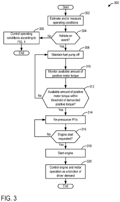 - A method is implemented to control the fuel pump in PHEVs by maintaining it off during vehicle-on events and commanding its activation based on predicted engine-start requests, taking into account driver demand and available motor torque, and learning commonly traveled routes to optimize engine start times, thereby reducing fuel injector re-pressurization during electric-only mode.