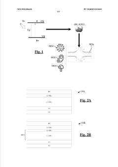 Recent developments have focused on creating photocatalytic materials that can be activated by visible light rather than just UV radiation. This is achieved by modifying traditional photocatalysts or developing new materials with appropriate band gaps. When incorporated into lightweight industrial polymers, these visible light-responsive photocatalysts significantly improve the practical applicability of disinfection systems, as they can operate under normal indoor lighting conditions. This advancement enhances energy efficiency and expands the potential applications of photocatalytic polymer materials in everyday settings.Expand Specific Solutions04 Nanostructured photocatalytic materials for polymer integration
