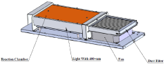 - A photocatalyst reaction chamber utilizing non-toxic photocatalysts coated on baffle plates activated by visible light, specifically Low Energy Cascade Oxidation (LECO) technology, which enhances microbial and VOC deactivation through cascade oxidation, using visible light with a wavelength of 400+nm and optimized light distribution.