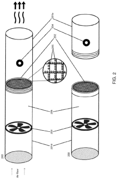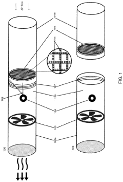 Technical Solution:  Daikin has developed advanced photocatalytic air purification systems utilizing titanium dioxide (TiO2) coatings activated by UV light. Their patented Streamer Technology combines photocatalysis with plasma discharge to generate high-speed electrons that decompose harmful substances. This technology creates hydroxyl radicals that effectively break down viruses, bacteria, allergens, and VOCs. Daikin's systems incorporate multi-layer filtration with photocatalytic elements strategically positioned to maximize air contact time. Their latest innovations include visible light-responsive photocatalysts doped with nitrogen or metal ions that can operate under indoor lighting conditions, eliminating the need for dedicated UV sources and reducing energy consumption. Field tests have demonstrated 99.9% inactivation of airborne pathogens within 2-3 hours in room-sized environments.