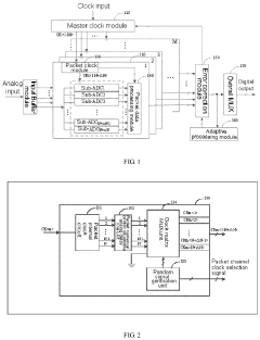 Error correction mechanisms for analog-to-digital conversion in photonic computing systems focus on minimizing quantization errors and signal distortion. These techniques employ specialized algorithms and hardware configurations to improve conversion accuracy between analog optical signals and digital representations. Methods include calibration techniques, adaptive sampling, and compensation circuits that account for non-linearities in the conversion process, ensuring high-fidelity signal processing in hybrid photonic-electronic computing architectures.Expand Specific Solutions03 Photonic neural network error correction