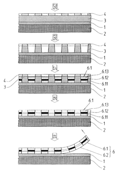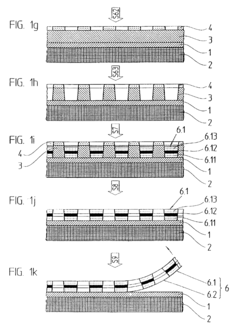 - A method involving the application of multi-layer strips and recesses, where a first layer is patterned and etched to expose areas for galvanic layer deposition, allowing for the formation of self-supporting structures with precise control over layer thickness and edge smoothness, utilizing a two-stage etching process with an electrically conductive etch stop layer and plasma etching, enabling the structure to be removed without damage.