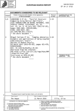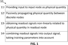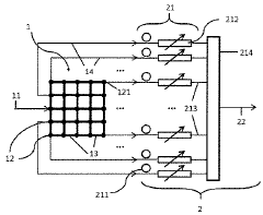Technical Solution: IMEC has developed an advanced photonic reservoir computing platform that integrates multiple optical components on a single silicon photonics chip for temporal signal processing. Their technology utilizes a network of coupled optical resonators and waveguides to create complex interference patterns that serve as computational nodes. IMEC's approach focuses on scalability, having demonstrated systems with over 64 nodes on a single chip while maintaining coherent optical processing capabilities[3]. Their PRC implementation achieves processing speeds of up to 20 GHz with power consumption under 2W, making it suitable for edge computing applications requiring real-time signal processing. IMEC has benchmarked their system against standard temporal tasks including nonlinear channel equalization, achieving bit error rates below 10^-6 at 10 Gbps[4]. Their technology incorporates tunable elements that allow for reservoir optimization for specific tasks, enhancing versatility across different signal processing applications.