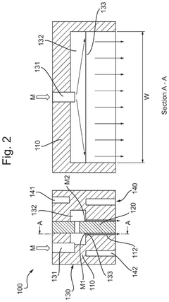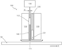 Technical Solution: Tokyo Electron has pioneered a compact atmospheric pressure plasma source specifically optimized for SALD applications. Their design utilizes a dielectric barrier discharge (DBD) configuration that generates uniform plasma at atmospheric pressure, eliminating the need for vacuum systems. The plasma source incorporates a novel electrode geometry that creates a stable glow discharge with minimal arcing, even at atmospheric conditions. TEL's system features a proprietary gas delivery system that enables rapid switching between reactive species, with gas residence times below 100 milliseconds. The plasma source is designed with a modular architecture that allows for easy scaling to accommodate different substrate sizes, from small wafers to large panels for display applications. Their technology also incorporates real-time plasma monitoring using optical emission spectroscopy to ensure process consistency and enable closed-loop control of plasma parameters during continuous SALD operation.