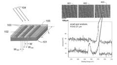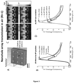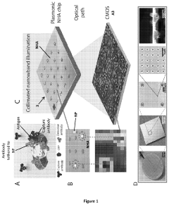 Strengths: Exceptional optical engineering expertise; highly sensitive detection through optimized nanostructures; successful integration with portable electronic devices. Weaknesses: Sophisticated nanofabrication requirements may limit mass production capabilities; higher costs associated with precision manufacturing; challenges in standardization across different production batches.