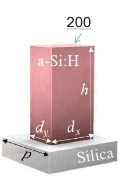 - A dielectric metasurface doublet device is developed, comprising hydrogenated amorphous silicon nanopost arrays on both sides of a silica spacer, with distinct nanopost configurations for TE and TM mode polarizations, enabling bidirectional beam steering and adjustable angular magnification through polarization control.