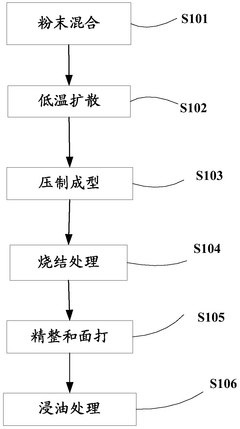 - Sintering process optimization for balanced properties: Optimizing the sintering process parameters is crucial for achieving the ideal balance between mechanical strength, wear resistance, and oil retention in powder metallurgy components. Controlled temperature profiles, sintering atmospheres, and cooling rates significantly influence the final microstructure and pore characteristics. Advanced sintering techniques such as liquid phase sintering and spark plasma sintering can be employed to create components with tailored porosity networks that maximize oil retention while maintaining structural integrity. These optimized processes result in components with superior performance in applications requiring both strength and self-lubrication properties.