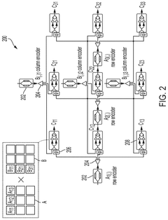 - A photonic processor architecture that encodes row and column values of matrices into optical signals using row and column encoders, and performs optical multiplication using phase-stable chip-based devices, reducing electrical power consumption and latency by leveraging optical waveguides for data transmission.