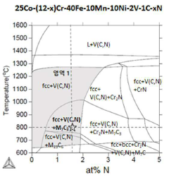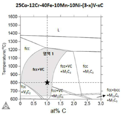 - A high entropy alloy composition based on the FCC phase, incorporating vanadium carbide and/or vanadium nitride precipitates, is developed to enhance strength and elongation without causing grain boundary failure.
