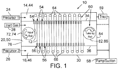 Technical Solution: Lotus Applied Technology has developed a specialized APALD system called FlexAL™ specifically designed for flexible substrate applications. Their approach utilizes a proprietary low-temperature plasma-enhanced ALD process that operates effectively below 100°C, making it compatible with temperature-sensitive polymer substrates including PET, PEN, and various polyimides. The system features a unique curved deposition chamber design that minimizes mechanical stress on flexible materials during processing by maintaining natural substrate curvature rather than forcing flatness. Lotus has engineered specialized precursor delivery systems that provide highly uniform distribution across varying substrate topographies, addressing one of the key challenges in flexible electronics manufacturing. Their technology incorporates pulsed plasma modes that deliver precise energy control, preventing substrate damage while ensuring complete surface reactions. The FlexAL™ system includes integrated stress management features that compensate for film-induced substrate deformation during growth, maintaining dimensional stability throughout the deposition process. Additionally, Lotus has developed specialized interface engineering techniques that enhance adhesion between inorganic ALD films and organic flexible substrates, addressing a critical failure point in flexible electronics.