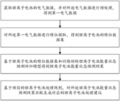 - By extracting the characteristic data set of lithium-ion batteries, including voltage, current, charge and discharge and ambient temperature data, the regression prediction model is used to accurately predict the energy state of the lithium-ion battery, and a corresponding maintenance plan is generated based on the preset maintenance rules.