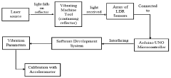 - A real-time non-contact vibration measuring system using a laser beam reflected from the machine tool surface, detected by an array of Light-Dependent Resistors (LDR) sensors, which send signals to a microcontroller and software for analysis, eliminating the need for sensor mounting and reducing costs.