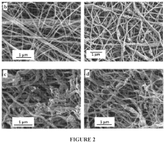 Artificial intelligence and machine learning algorithms are increasingly applied to electrospinning quality control. These technologies analyze image data from produced fibers to automatically detect defects, inconsistencies, or anomalies that might not be visible to human inspectors. Pattern recognition capabilities enable the system to identify emerging quality issues before they become critical. The machine learning models continuously improve over time as they process more data, leading to increasingly accurate defect detection and classification.Expand Specific Solutions05 Performance testing of electrospun materials