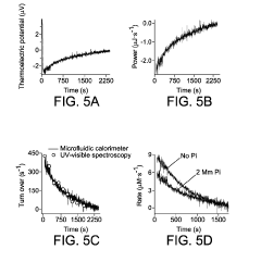 - A calibration method using the deprotonation reaction of a phosphate group is introduced, involving a buffer with a pH range of 7-9 and a compound with a phosphate group protonated in a pH range of 3-6, which generates heat measured by thermopiles, allowing for reliable calibration by relating thermopile signals to reference data from the deprotonating reaction.