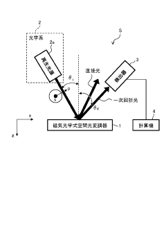 - A diffraction efficiency optimization system and method that involves a magneto-optical spatial light modulator with a multilayer film structure, a variable-angle laser beam source, a detector, and a computer to optimize the intensity of first-order diffracted light by adjusting incident angle and polarization.
