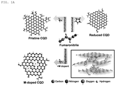 - The synthesis of carbon quantum dots with a single transition metal atom, such as Zn, Fe, Co, or Ni, using hydrothermal methods with a carbon precursor like fumaronitrile, creates a catalyst that maximizes activity and stability by minimizing metal usage and enhancing bonding capabilities.