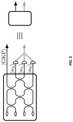 Technical Solution: Google has developed a photonic quantum error correction architecture based on bosonic codes specifically tailored for continuous-variable quantum systems. Their approach encodes quantum information in the infinite-dimensional Hilbert space of light modes, utilizing Gottesman-Kitaev-Preskill (GKP) codes that protect against both photon loss and phase errors simultaneously[2]. Google's implementation employs programmable integrated photonic circuits with low-loss waveguides and high-fidelity beam splitters to perform non-destructive error syndrome measurements. Their system features dynamic optical switching networks that route photons through correction circuits based on real-time error detection results. Google has demonstrated concatenated error correction by combining their bosonic codes with surface codes, achieving improved logical error rates that scale favorably with physical resources[4]. Their architecture includes specialized photon number-resolving detectors that enable more precise error identification compared to traditional binary detectors used in other quantum platforms[7].